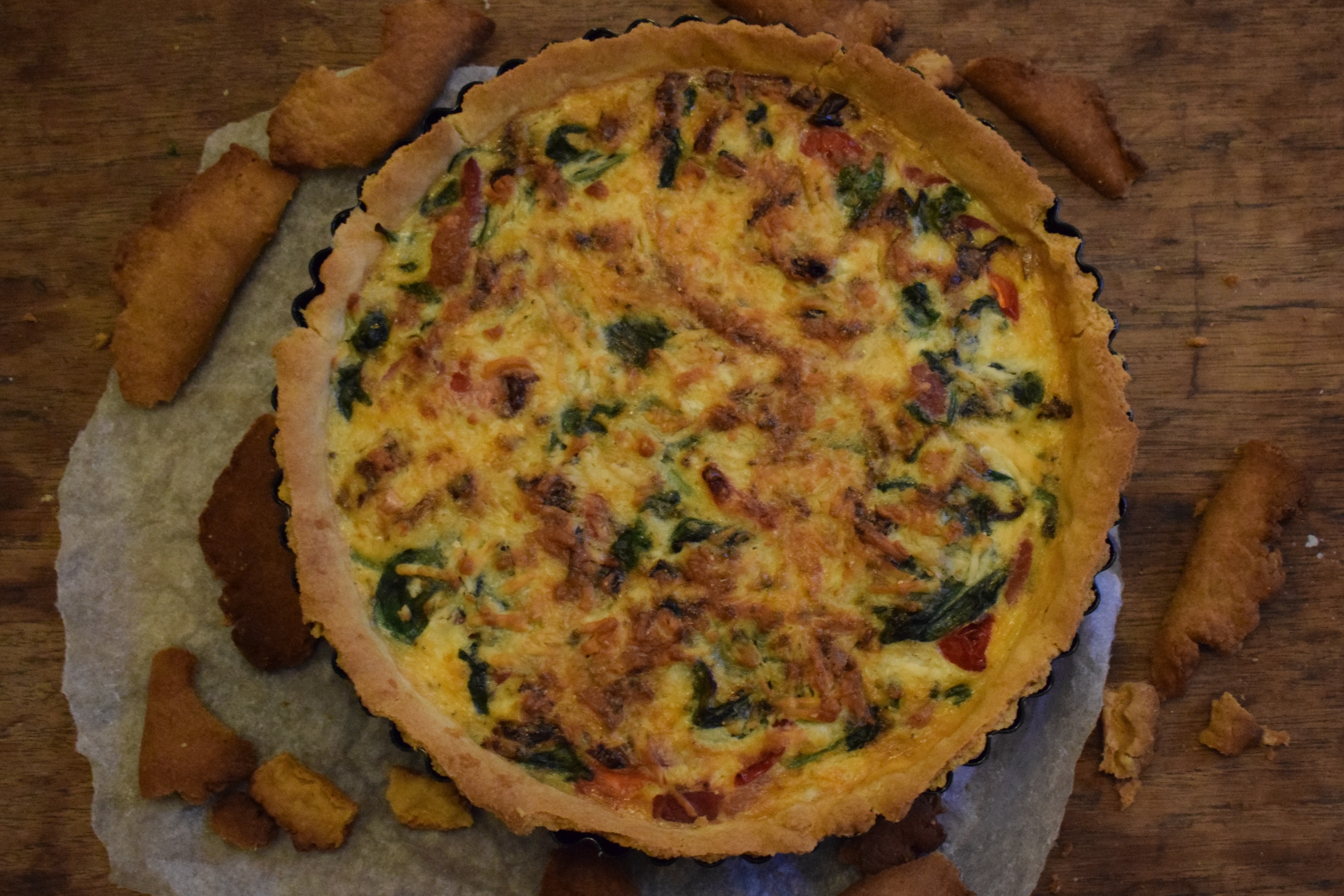 Red pepper, pancetta and spinach quiche – easy recipe