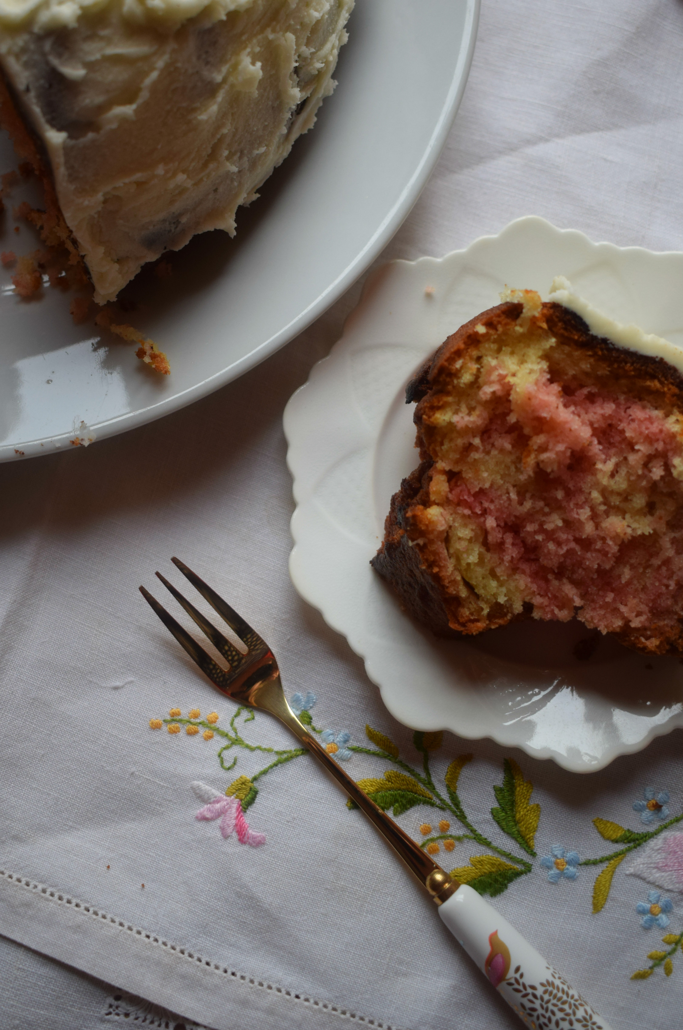 Neopolitan pound cake, complete with Portmeirion dessert fork